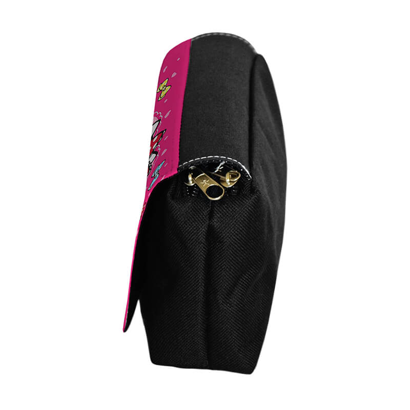 قسمت رویه جامدادی از جنس پارچه میباشد که کیفیت چاپ و وضوح تصویر بالایی دارد. بدنه جامدادی از جنس برزنت مشکی هست. همانطور که در تصاویر پیداست، رویه جامدادی به صورت چسبی باز و بسته می شود و درون آن دو قسمت زیپ دار مجزا برای قرار دادن لوازم قرار داده شده.