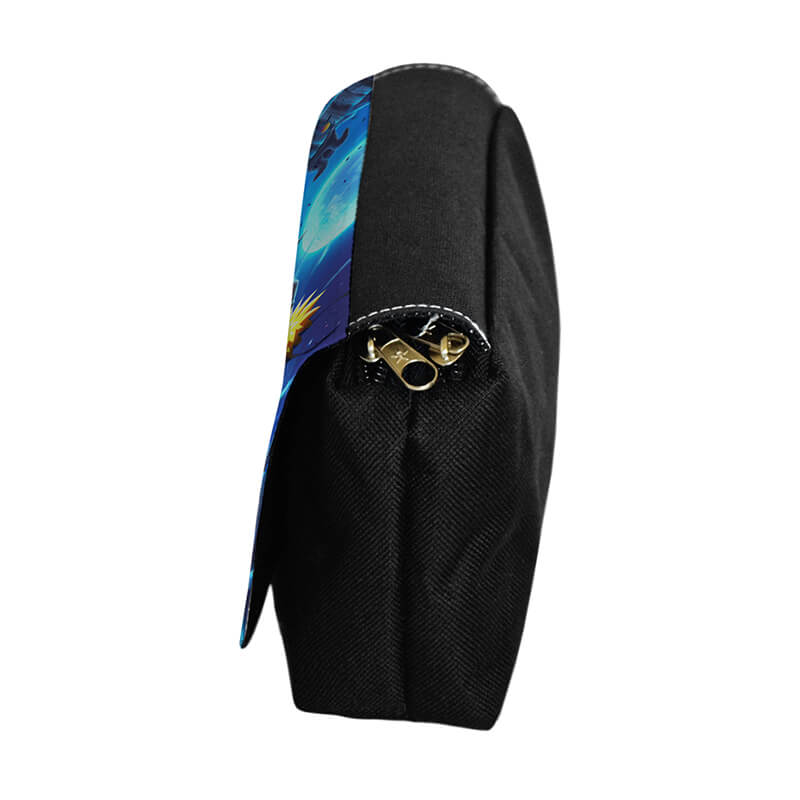 قسمت رویه جامدادی از جنس پارچه میباشد که کیفیت چاپ و وضوح تصویر بالایی دارد. بدنه جامدادی از جنس برزنت مشکی هست. همانطور که در تصاویر پیداست، رویه جامدادی به صورت چسبی باز و بسته می شود و درون آن دو قسمت زیپ دار مجزا برای قرار دادن لوازم قرار داده شده.