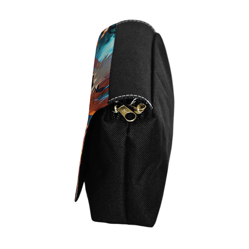 قسمت رویه جامدادی از جنس پارچه میباشد که کیفیت چاپ و وضوح تصویر بالایی دارد. بدنه جامدادی از جنس برزنت مشکی هست. همانطور که در تصاویر پیداست، رویه جامدادی به صورت چسبی باز و بسته می شود و درون آن دو قسمت زیپ دار مجزا برای قرار دادن لوازم قرار داده شده.